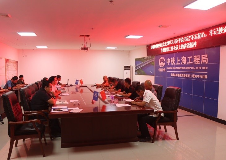 6月17日,宣城市阳德路道路建设工程ppp项目党支部开展“学习习近平总书记‘不忘初心、牢记使命’主题教育工作会议上的讲话精神”专题党课。项目党组织负责人主持学习,项目部全体员工参加。