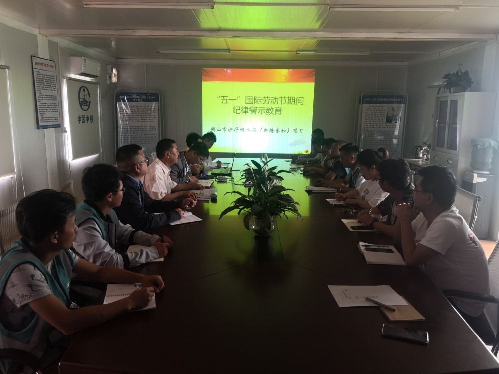 5月1日,鹤山市沙坪河综合整治工程(第二期)EPCO项目党支部组织开展节日期间党员干部纪律警示教育活动,鹤山沙坪河综合整治及新塘永和污水处理厂四期工程项目部党员、班子成员和关健岗位管理人员参加学习。