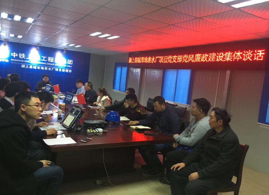 3月6日下午,颍上县城市地表水厂项目党支部组织全体领导干部开展廉洁从业警示谈话,并与相关人员分别签订了《廉政承诺书》、《党风廉政建设责任状》及《党风廉政建设共保合同》。