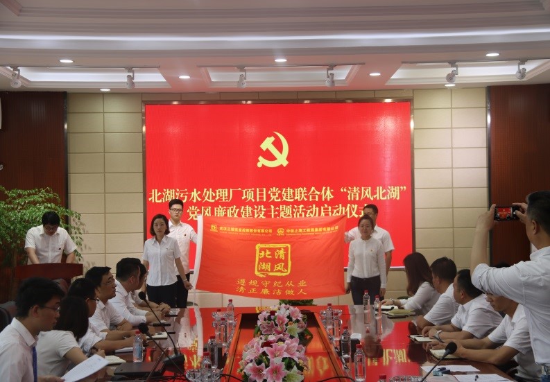 5月25日,公司武汉北湖污水处理厂及附属工程项目部联合项目建设单位武汉三镇实业控股股份有限公司和2家监理单位联合开展了“清风北湖”党风廉政建设主题活动。