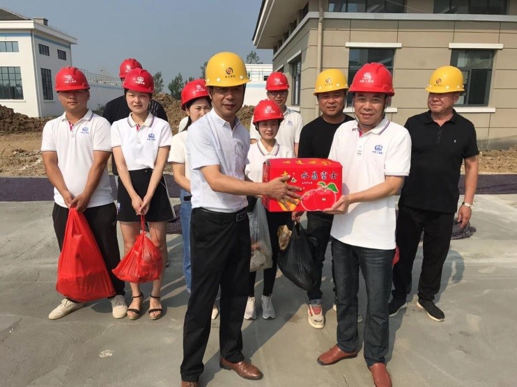 9月13日,颍上首创水务公司总经理林猛一行到公司承建的颍上县城市地表水厂项目慰问项目员工。林猛为员工送上月饼、鸡肉、鱼等慰问品,并对大家在节日期间依然坚守岗位工作表示感谢,同时也衷心的祝愿大家中秋愉快。他强调在节日工作期间也要严格把控安全工作,真正实现有序抢工,