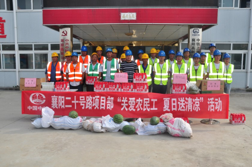 自7月12日入伏以来,湖北襄阳持续高温30℃以上,正值襄阳区域经理部各在建项目施工生产的关键时期,为了保障外协队施工人员的安全健康,确保他们能够全身心的投入到施工大干中去,襄阳区域经理部工会积极开展“夏日送清凉 关爱农民工”活动。
