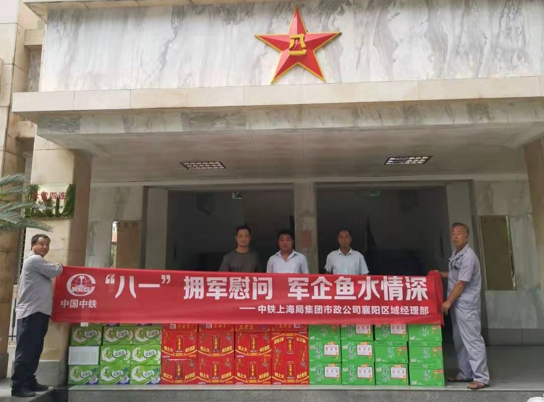 7月30日,在建军节来临之际,襄阳区域经理部到襄阳通信三营开展 “‘八一’拥军慰问,军企鱼水情深”活动。项目负责人为部队的官兵战士送上节日的祝福和亲切的慰问,并送上了凉茶、绿茶和牛奶等节日慰问品,在炎炎夏日为通信官兵们送去一丝清凉。