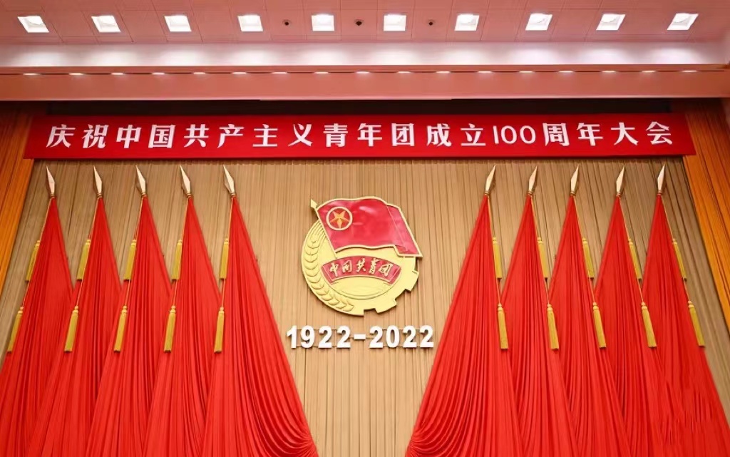 5月10日上午10时,庆祝中国共产主义青年团成立100周年大会在北京人民大会堂隆重举行。