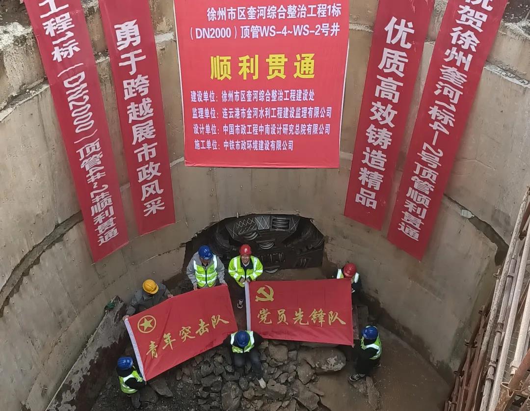 12月14日上午,徐州市区奎河综合治理1标项目WS-4#~WS-2#段顶管顺利贯通。...
