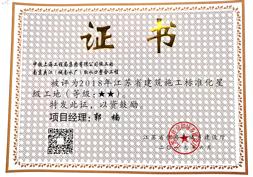 近日,南京夹江(城南水厂)取水口整合工程荣获“江苏省建筑施工标准化星级工地”荣誉称号,这是该项目继荣获“南京市建筑施工市级标准化文明示范工地”后又一荣誉。...