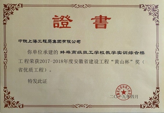 公司承建的蚌埠高级技工学校教学实训综合楼工程荣获2017-2018年度安徽省建设工程“黄山杯”奖(省级优质工程)。...