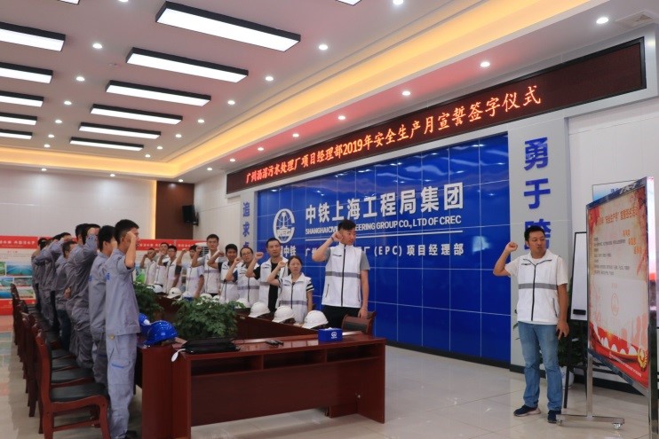 广州沥滘污水处理厂项目部:组织全体职工进行2019年安全质量集体宣誓,并联合业主、监理单位在会议室举行签字仪式。...
