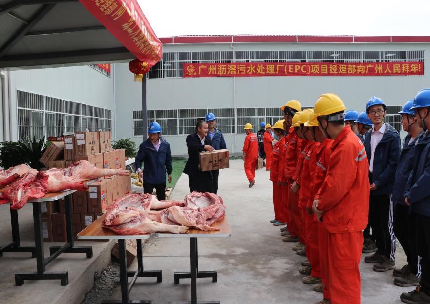 2月3日上午,广州沥滘污水处理厂(EPC)项目经理部开展职民工春节慰问活动,为项目部300多名管理及劳务人员送上了公司的关怀和新年祝福。活动由公司总经济师王小波主持。