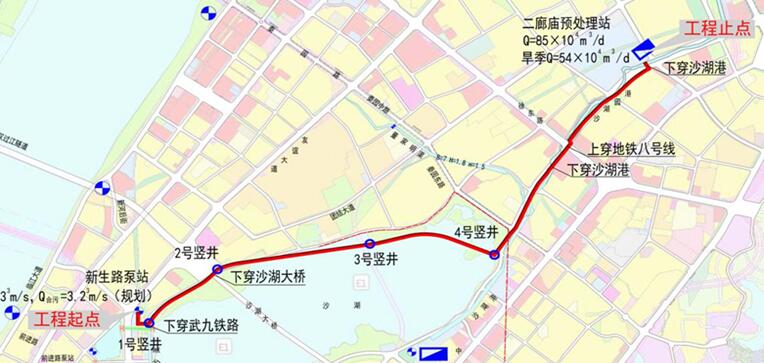 武汉长江、沙湖水环境提升工程是国家“长江大保护”战略部署以及武汉水环境治理重要一环,也是湖北省内首次实施的最大直径顶管工程。工程主线起于新生路污水泵站,穿越武九铁路后,沿沙湖北岸线、沙湖公园、沙湖大道走向,进入二郎庙污水预处理站,中间由5780米长的大口径地下管道相连。