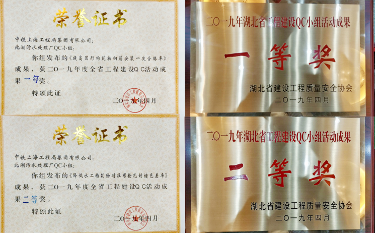 4月23日,从湖北省建设工程质量安全协会获悉,由中铁上海工程局乐竞体育是靠谱吗市政公司承建的北湖污水处理厂及其附属工程土建工程项目部分获2019年湖北省工程建设QC活动一、二等奖,其中《提高圆形构筑物钢筋安装一次性合格率》获得一等奖。