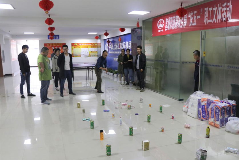 2019年5月1日上午,宣城阳德路项目部组织开展的“快乐五一”趣味文体活动。本次活动设台球、套圈、等多个项目。项目部还为活动准备了丰富的奖品,为比赛获奖者献上一份心意。活动现场有得奖者的喜悦,更有项目部员工间融洽欢乐的氛围。