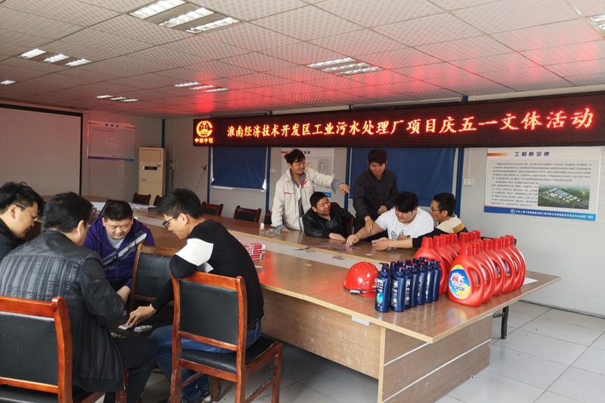 4月30日上午,淮南经济技术开发区污水处理厂项目经理部组织开展了“庆五一”文体趣味活动。项目部在确保生产安全、队伍维稳、施工有序推进的同时,组织安排了抢凳子、跳绳、掼蛋等文体活动。 (胡玉)