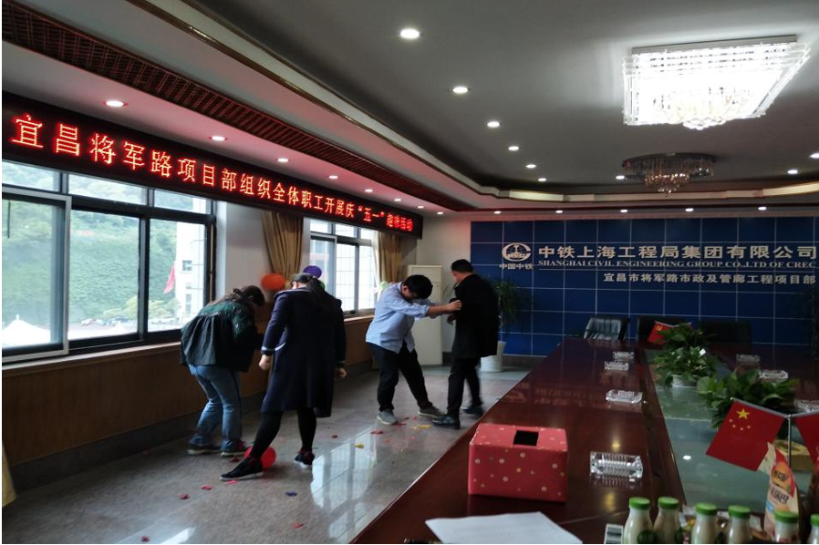 4月30日下午,宜昌市将军路项目部组织全体职工开展了庆“五一”趣味活动,大家自告奋勇地参与到“踩气球”和“准投球”的活动中,欢呼声迅速将现场的气氛推到高潮。