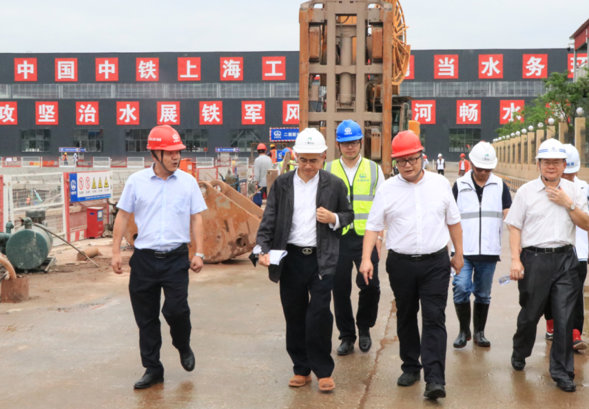 黄洪飙一行来到工程现场,听取了项目负责人对项目安全文明施工、工程质量、施工进度以及下一步工作安排等内容的汇报,详细了解了项目工人生活环境等方面的情况。黄洪飙指出,广州市水务局是广州市政府主管全市水务行政的工作部门,承担了排水污水处理等与水有关的行政业务,近几年在水污染治理方面所取得了一定的成绩,但面临的水环境治理任务仍然艰巨。沥滘污水处理厂工程是广州市打赢“黑臭水体攻坚战”的关键一役,意义巨大,希望项目部在保证安全、质量的前提下,加快工程建设进度,优质高效地完成建设任务,完成年底通水目标。
