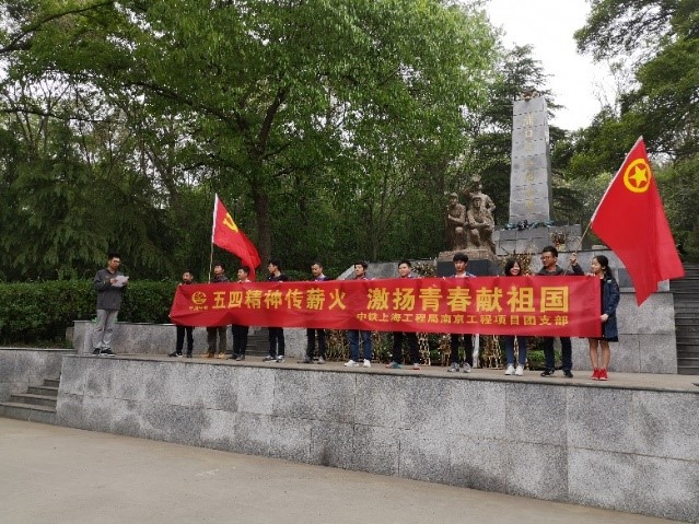 南京工程项目团支部于近期组织开展了一系列五四纪念活动。一是4月20日组织项目全体员工前往浦口烈士纪念碑,参加义务扫墓并敬献花圈,广大青年在纪念碑下宣读五四精神并向烈士鞠躬,活动标语“五四精神传薪火 激扬青春献祖国”。二是4月22日,应业主单位邀请,双方支部共同举办了员工拔河友谊赛。并在当天于城南项目部举行南京工程项目青年篮球赛,增进各项目部成员的友谊。三是5月3日,在浦口项目部组织开展重温入团仪式,授予团员青年团徽并一同宣读入团誓词,合唱国歌团歌。在项目部门口的南京北站老火车站广场中心合影纪念。当天晚上,在浦口项目部会议室组织观看五四爱国主义电影《我的1919》,深刻理解“弱国无外交”的含义并影射当代青年应当奋发图强,为建设强大的祖国而努力奋斗!