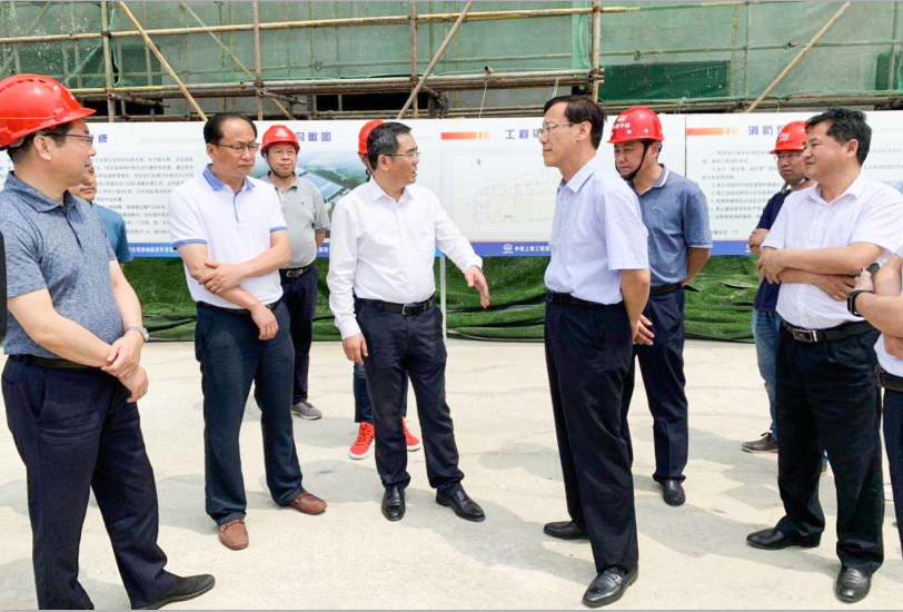 6月1日,淮南市委副书记、市长张孝成一行到公司承建的淮南经开区污水处理厂项目检查指导工作,淮南市经开区副主任、党工委书记张海涛、市政府相关部门负责人陪同。