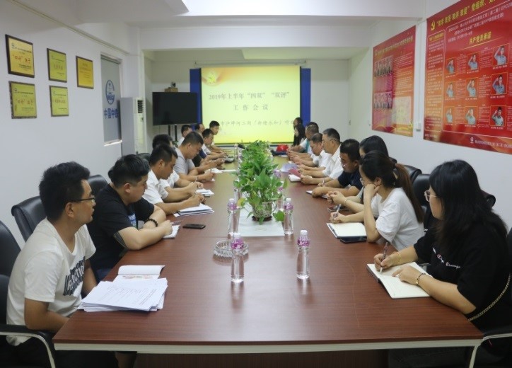 6月7日,福州市东南水厂工艺改造工程第1标段项目党支部召开2019年上半年“四双”工作“双评”会议,项目部全体党员、入党积极分子及项目职工参加会议,会议由项目书记主持。