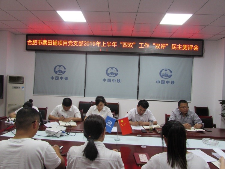 6月15日,合肥蔡田铺项目党支部召开2019年上半年“四双”工作“双评”民主测评会议。会议由项目副书记主持,项目部全体职工参加。(朱天娥)