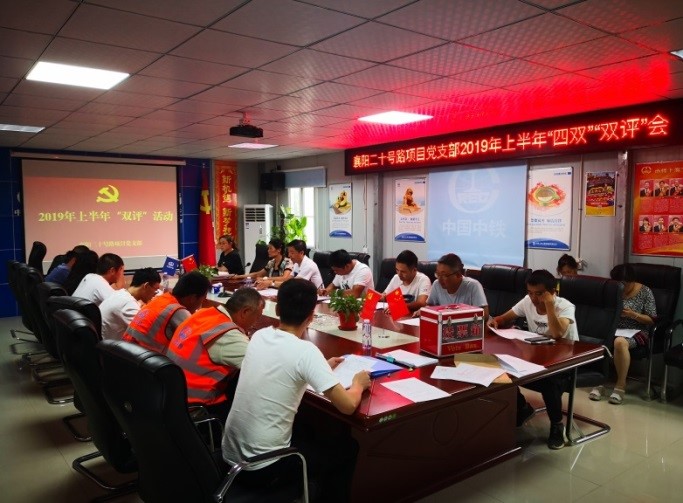 6月14日,襄阳二十号路项目党支部召开2019年上半年“四双”工作“双评”会议。会议由项目书记主持,项目部全体党员、入党积极分子、项目员工及外协队伍代表参加。(郑明丽)