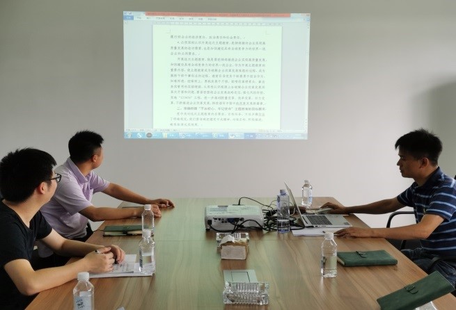7月17日,淮安项目党支部开展“不忘初心,牢记使命”主题教育工作宣贯会。全体党员及领导干部参加会议,会上,党支部书记传达了习近平总书记、张宗言总裁关于 “不忘初心、牢记使命”主题教育工作讲话精神等内容,对其重点概念和内涵进行一一解读。随后,为大力推进主题教育工作在项目走深走实,项目党支部书记作了动员部署:党员干部要深入学习“不忘初心,牢记使命”主题教育的重大意义和总要求,准确把握和理解这一总要求,才能确保主题教育开展见成效;要守初心、担使命,履职尽责,时刻向先进党员看齐,鞭策自己,不忘初心,把握现在,以实际行动践行党员标准。(张佩佩)