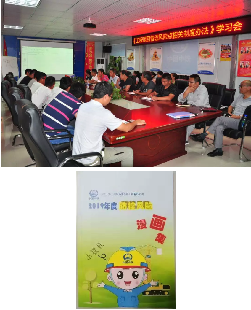 在深入推进风险防控过程中,针对10项风险19个风险点进行排查,以“一表两单三报告”为主线,重点抓好管理风险点年度排查和每月风险防控情况自查工作。同时,每月支委会认真听取各班子成员的风险防控检查情况报告,及时研究部署具体风险点的防控措施和责任分工,确保将已发现风险隐患全部整改消除,持续巩固防控风险工作成果。此外,项目党支部印刷了风险防控漫画和宣传展板,以妙趣横生的画面和发人深省的对话,引导员工理解风险点,掌握防控措施,推动制度落地生根;还积极开展了党风廉政建设主题活动,签订廉洁责任状及廉洁承诺,共筑廉洁风险防线,营造了项目风清气正的廉洁工作氛围。