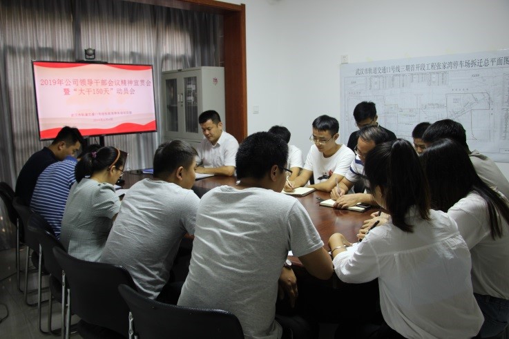 武汉市轨道交通11号线张家湾停车场项目部:组织员工学习宣贯公司会议精神,号召全体员工认真领会公司领导讲话,结合本职工作,高度重视安全生产,强化质量管理,狠抓标准化建设,坚定推进管理创新以及项目精细化管理,群策群力,坚定不移朝着既定目标不断奋进。一是项目全体员工要全面深入了解当前形式,不断自我加压,项目部各部门要做好开工前的各项准备工作。二是工程部尽快完善临建方案,针对张家湾停车场项目实际需求,借鉴先进经验,大胆创新,建立集使用价值和审美价值于一体的临建驻地。三是主动协助业主进行征地拆迁,快速打开施工局面,为主变电站施工打下良好基础。四是全体员工要在工作之余广泛学习,不断提高自身综合素质和专业技能,为公司滚动发展做出更大贡献。(张 楠 彭娟娟)