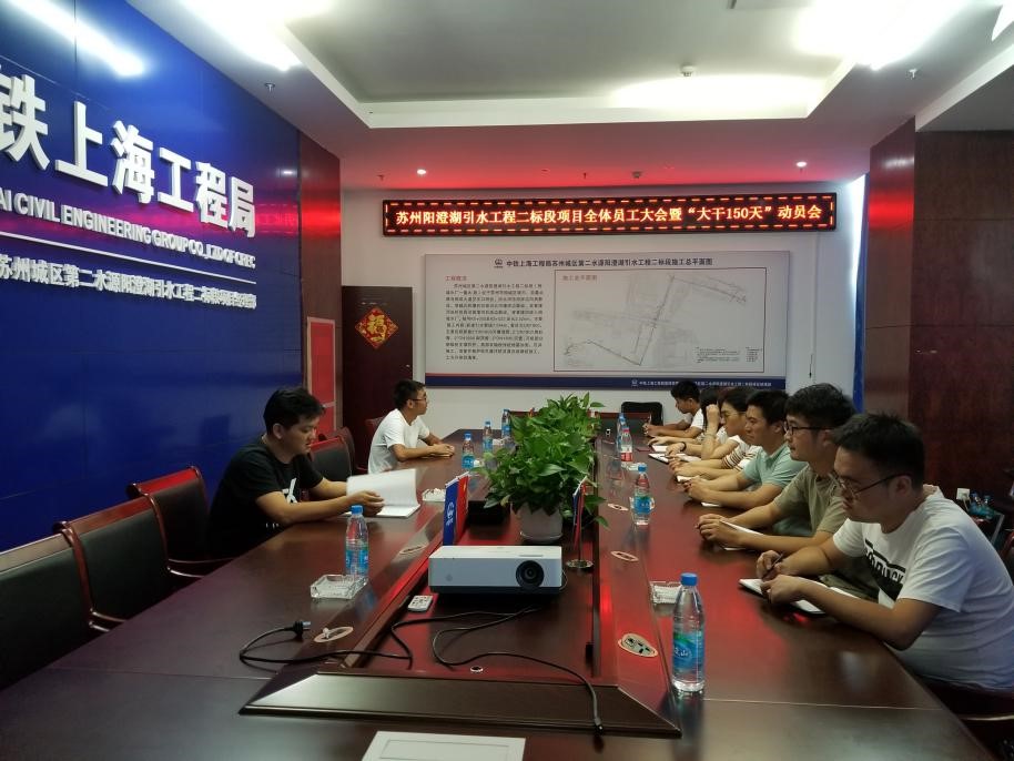 苏州阳澄湖引水工程二标段项目部:组织项目部全体员工宣贯公司会议精神,并召开“大干150天”活动动员会,结合项目实际情况对后5个月的工作进行了安排部署:一是根据公司“大干150天”活动施工生产计划,详细制定顶管、沉管施工工期节点,明确大干期间工作任务。二是深入施工现场查缺补漏,确保人、机、料在大干期间满足施工生产需求,保证工程进度、质量、安全全部达标。三是项目全体员工要有紧迫感,打起百分之百的精神,干好本职工作,借大干150天热潮,完成公司下达的产值指标。(秦旖旎)