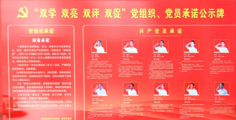 二是确保“双亮”工作规范化、常态化。项目部严格按照规定每半年制定党组织承诺、党员承诺,定期检查党徽佩戴情况,桌牌摆放情况,时刻引导党员“亮身份”,便于群众的监督。
