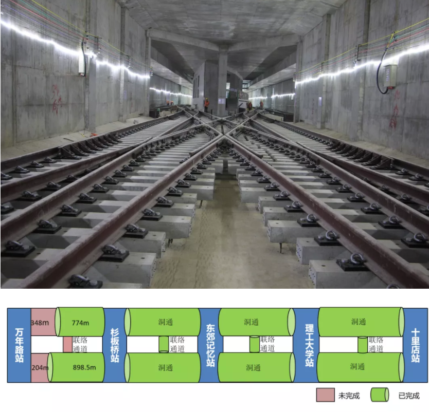 由公司承建的8号线一期工程6标包括四站四区间,四座车站分别为杉板桥站、东郊记忆站、理工大学站、十里店站。其中杉板桥站和理工大学站为地下三层车站,十里店站为8号线一期工程终点站,车站总建筑面积为83357㎡,工程造价5.51亿元(不含盾构,标段总造价7.84亿元),盾构区间长度为3364.529双线延长米。项目为中国中铁BT项目,合同工期为2017年1月—2020年12月。