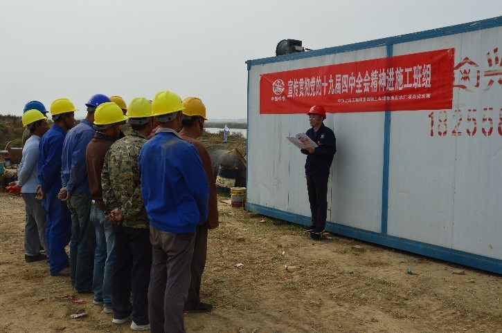 11月7日,颍上项目党支部组织进工区、进班组活动宣贯党的十九届四中全会精神。颍上水厂项目分为三个施工区,相互距离较远,且处于施工任务攻坚的关键阶段,为使党的十九届四中全会精神及时宣贯到项目的每名党员干部、施工一线工人,落实党的基层组织建设,党支部决定开展宣贯进工区、进班组活动。每到一处宣贯现场,项目书记向大家宣讲会议召开背景、全会提出的总体目标、工作要求等内容,并结合专家解读重申重点内容,要求党员干部统一思想和行动,以强烈的思想自觉、政治自觉和行动自觉,攻坚克难、锐意进取,为加快推进项目施工建设,力保通水目标实现而努力奋斗。结合项目建设存在的问题和面临的困难,项目书记对项目下步工作做出以下部署:一是聚焦思想,项目部全体员工要认真贯彻落实会议精神,以精神促思想,以思想保建设。二是充分发挥党员模范示范作用、党支部战斗堡垒作用,党员干部要找差距、抓落实,解决项目的难点热点问题,力保节点目标完成。三是严格制度落实,提升项目建设,确保 “职工小家”建设有内涵,员工有获得感、幸福感、荣誉感。(杨巧巧)