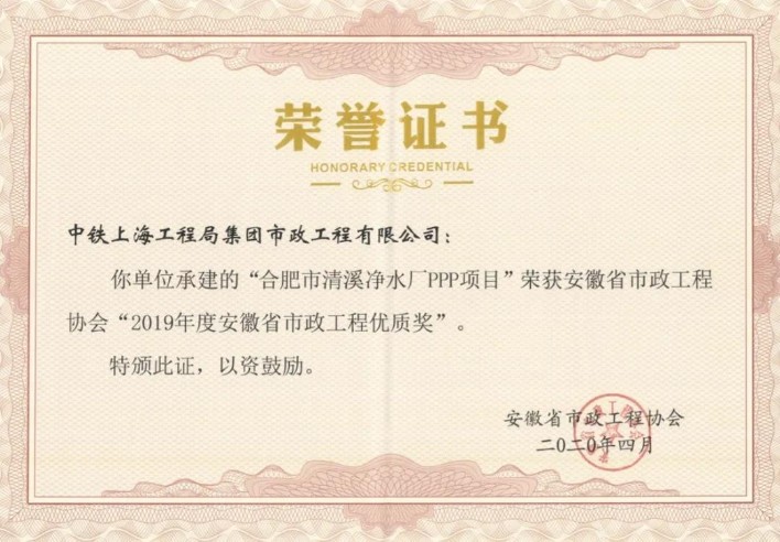 近日,安徽省市政协会传来喜讯,公司承建的合肥市清溪净水厂PPP项目荣获安徽省“市政工程优质奖”。