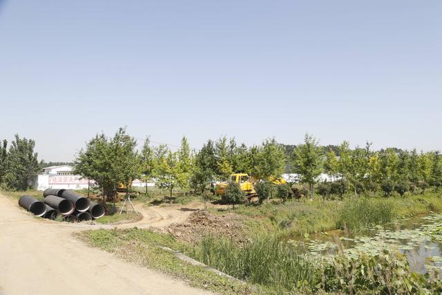 5月19日,在省道270戴圩段西侧的施工现场,施工人员正在进行管道铺设。在这段长达6公里的施工面上,种植着3排红枫树,每排大约有1200多棵。如果按照原有规定施工,三排树苗均要进行移出。为了减少对绿植的破坏,施工方将20米的作业面缩减至9到10米,这样只需移出一排树苗即可。