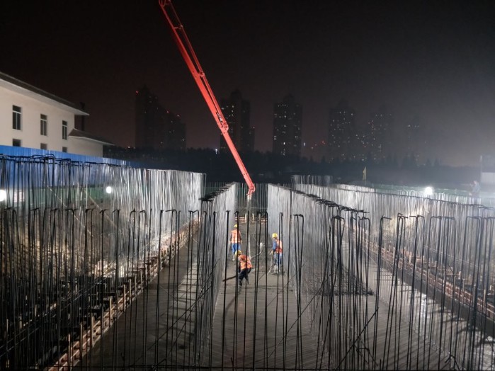 本次浇筑的底板位于三期工程接触消毒池及巴氏计量槽,浇筑从下午5:30开始,历时7个小时的浇筑施工,共完成205方浇筑任务。
