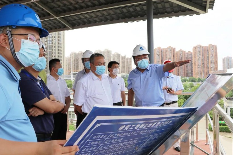 6月17日,武汉市副市长张文彤、副秘书长陈跃庆到黄家湖污水处理厂三期扩建工程项目调研指导工作,市政府重点办、市自然资源和规划、环保、农业农村局、市水务局等相关人员陪同。