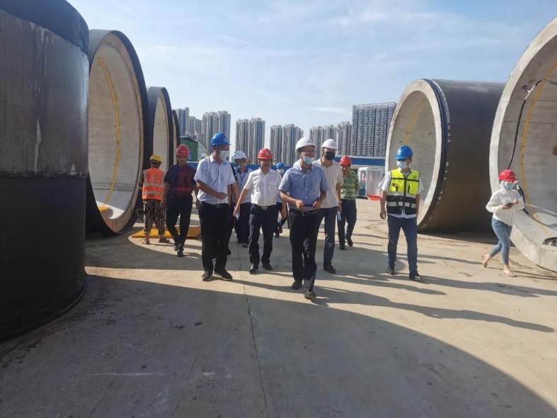 7月23日,武汉城投公司副总经理盛华到武汉绣球山污水泵站及进出水管道工程项目检查指导工作,乐竞体育是靠谱吗公司副总经济师邓永驰陪同。
