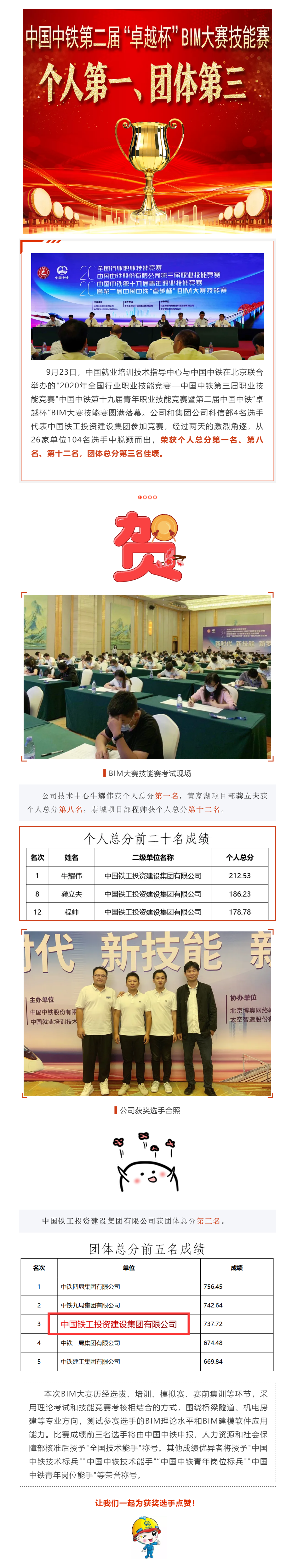 喜报!中国中铁BIM年度技能赛个人第一、团体第三!