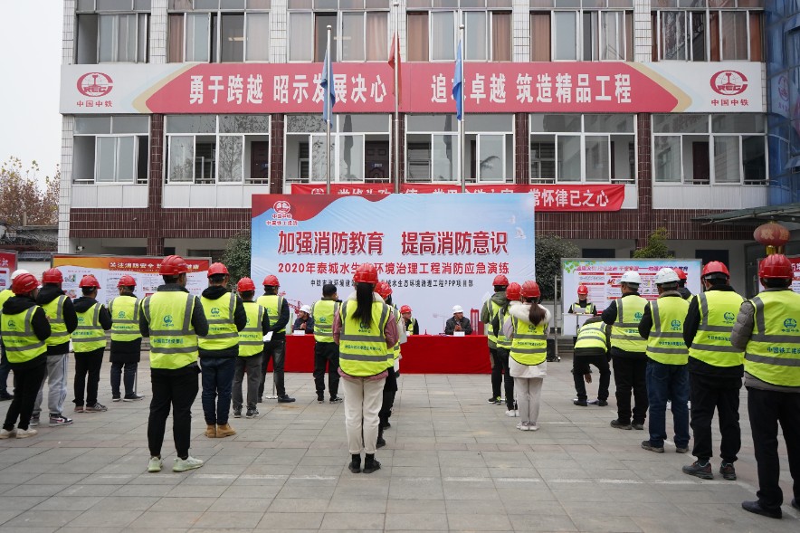12月9日,泰城水生态环境治理工程PPP项目在驻地开展消防应急实战演习,项目部及项目公司总包部员工四十余人参加了演练。