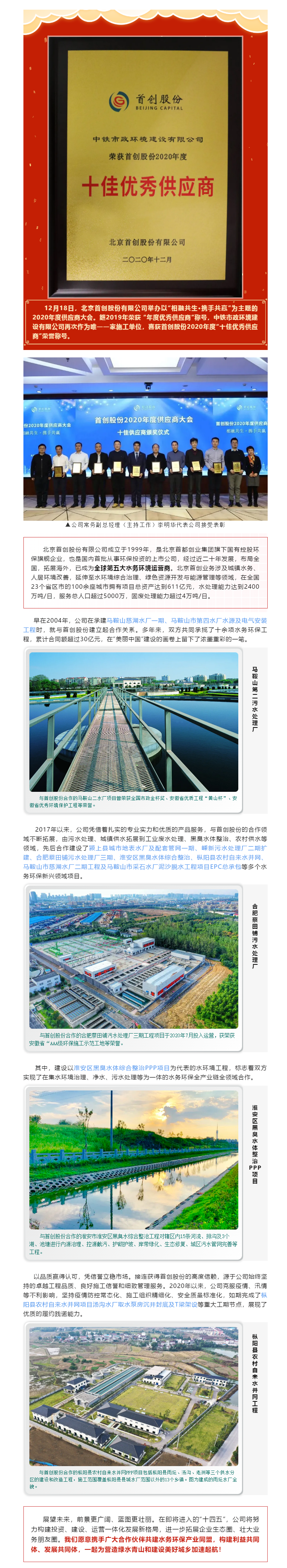 公司喜获北京首创股份“十佳优秀供应商”荣誉