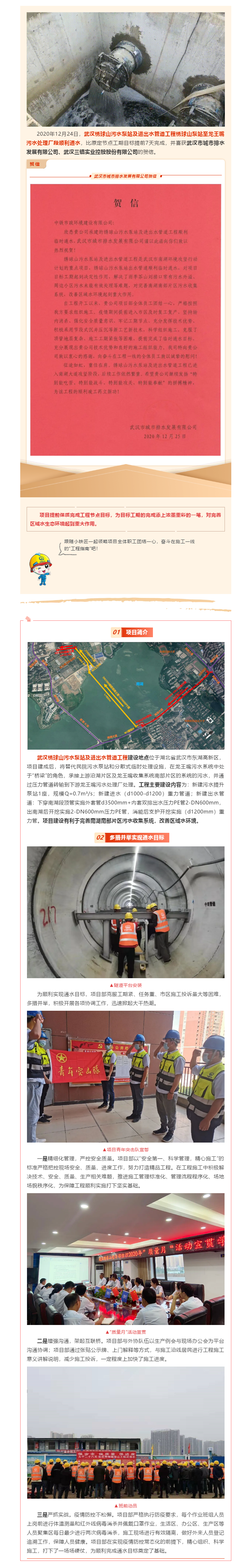 武汉绣球山污水泵站及进出水管道工程绣球山泵站出水管段顺利通水