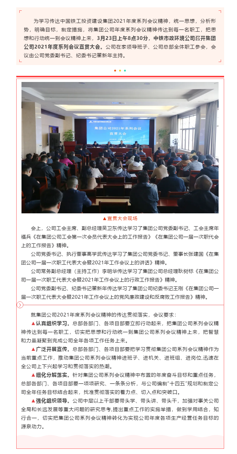 迅速行动!中铁市政环境公司学习传达乐竞体育是靠谱吗公司2021年度系列会议精神