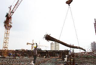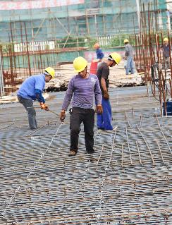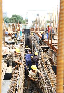 2015年9月25日拍摄,在昆山北区污水厂三期扩建工程施工现场工人们正在作业。 |