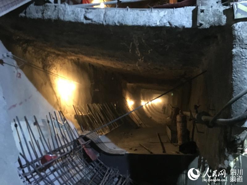 在成都二环路北一段高架桥的下方,地铁七号线西南交大站—九里堤站的隧道正在施工,桥基从隧道旁“擦肩而过”,最近的地方仅有2.8米。为了保证路面交通畅通和高架桥的稳定,地铁施工放弃盾构机,首次采用双侧壁导坑法分六步,人工开挖。