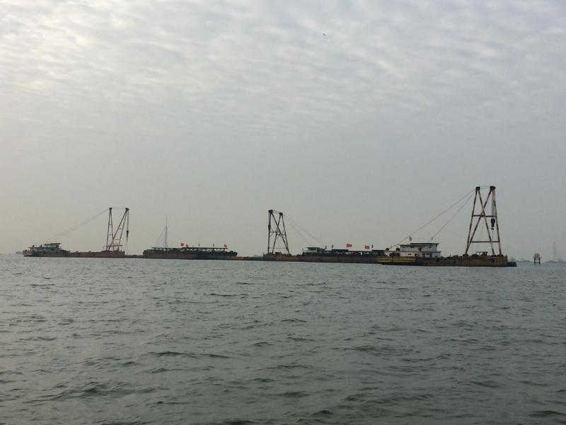7月6日,徐州骆马湖水源地施工03标项目北线管道顺利进行通水调试运行。图为徐州骆马湖项目沉管下沉施工全貌。