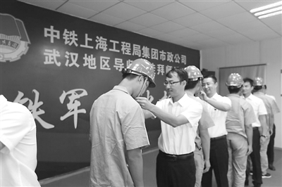 8月31日上午10时,在中铁上海局市政公司武汉地铁蔡甸线七标项目部“市政铁军 薪火相传”拜师活动现场,13名新入职大学生与他们的专业指导师父和职业规划导师共同签订师徒合同,正式拉开了工地“导师带徒”推行双导师制的序幕。拜师现场,师父还送给徒弟工地“文房四宝”——卷尺、钢笔、计算器、学习计划簿。刘鑫 李颖 苗武 摄