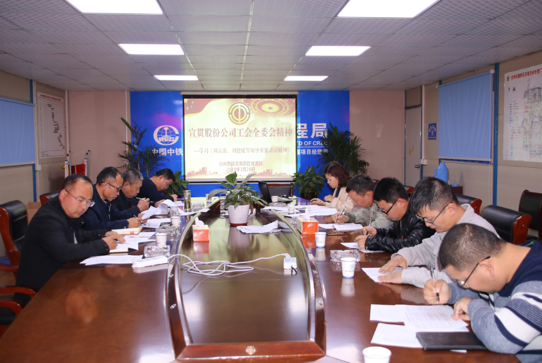 3月26日,台州区域项目党总支组织全体员工学习宣贯股份公司工会全委会领导讲话精神,活动由区域党总支书记黄伟主持。