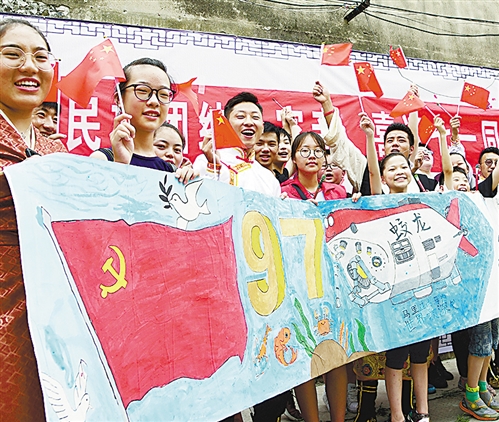 6月27日,安徽省歙县举办“一心跟党走 永远在路上”活动迎接党的生日。当日,200名县直机关党员和非公企业的党员从县城出发,沿着革命先烈走过的足迹,到达溪头镇汪满田村红军纪念碑。活动中举办升国旗、唱国歌仪式,沿途宣传环保、扶贫、文明创建等内容。吴建平摄